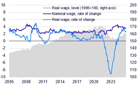When inflation rapidly rose in 2022, real earnings saw a sharp decline and household expectations about the overall and personal financial situation fell to a level far below what we have seen previously. The high inflation lasted also during 2023, when the economy entered a recession. Labour demand decreased at the same time as more people tried to compensate for their household’s lower purchasing power by searching for jobs, working more hours or trying to switch job.