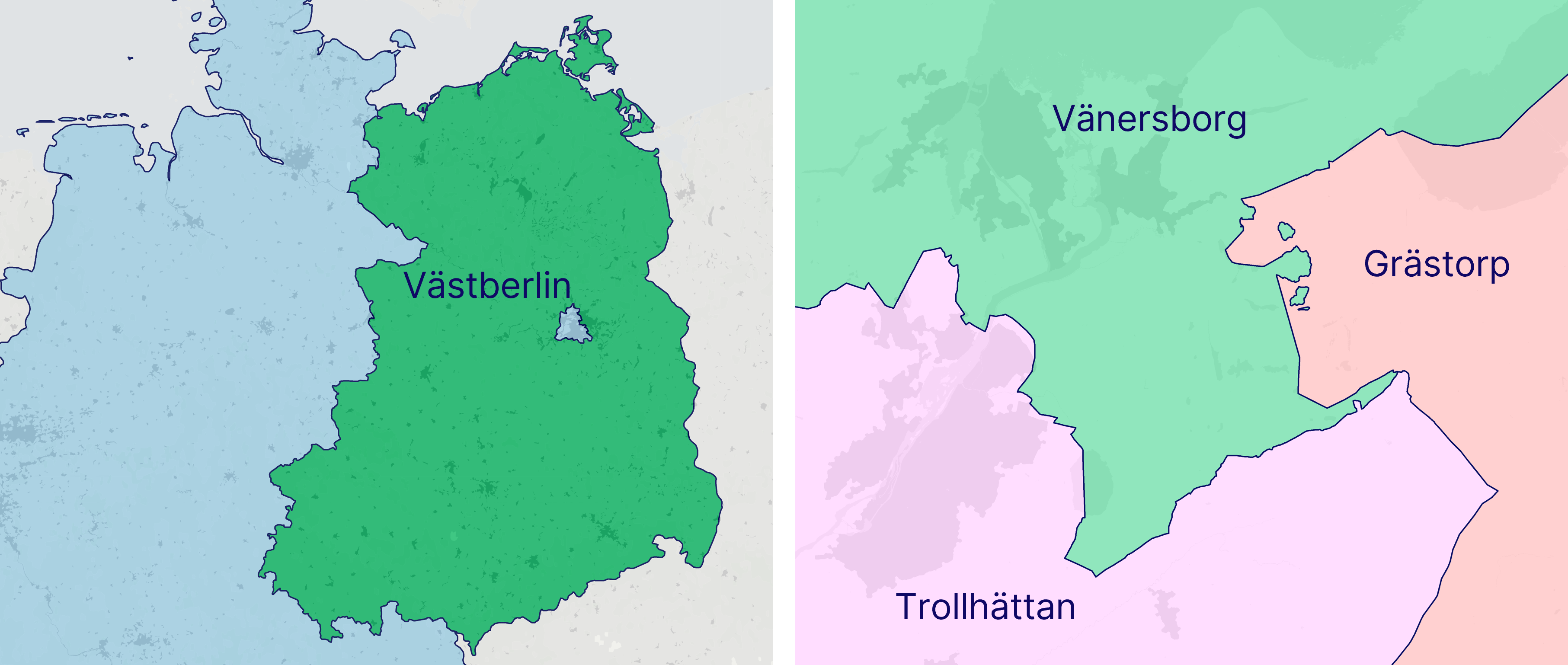 – Västberlin var exempelvis en exklav till dåvarande Västtyskland men ur Östtysklands perspektiv så var Västberlin i stället en enklav. Det var ett område som helt omslöts av Östtyskland men tillhörde Västtyskland, säger Stefan Svanström, expert på geografiska informationssystem på SCB.