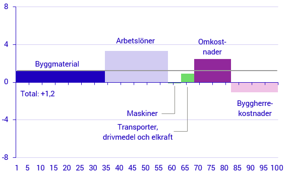 Bland entreprenörernas kostnader steg byggmaterialkostnaderna med 1,2 procent mellan januari 2025 och januari 2026. Alla materialkostnader ökade förutom kostnaderna för övrigt byggmaterial och el-materiel, som sjönk med 1,7 respektive 1,1 procent. Kostnaderna för trävaror och snickerier steg mest, med 5,7 respektive 3,6 procent.
